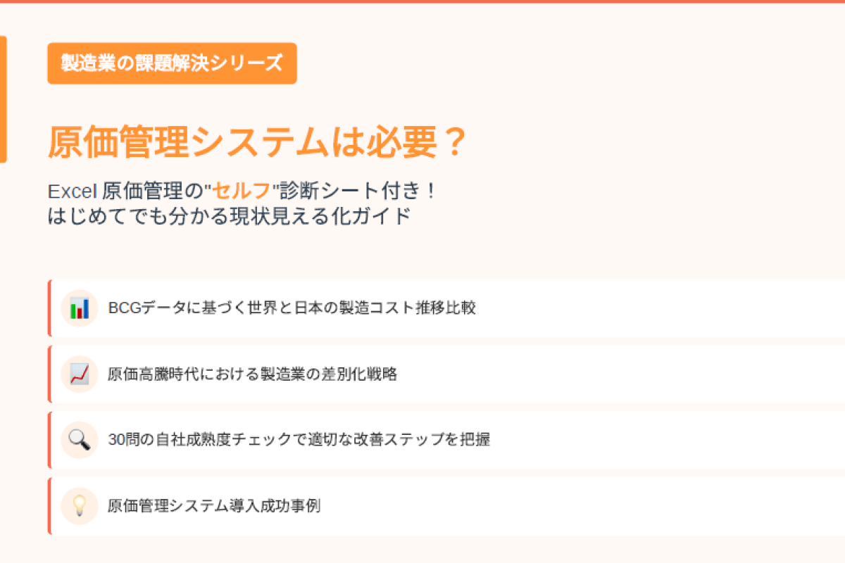 原価管理システムが自社に必要か、判断するための情報とセルフ診断シートをまとめました。