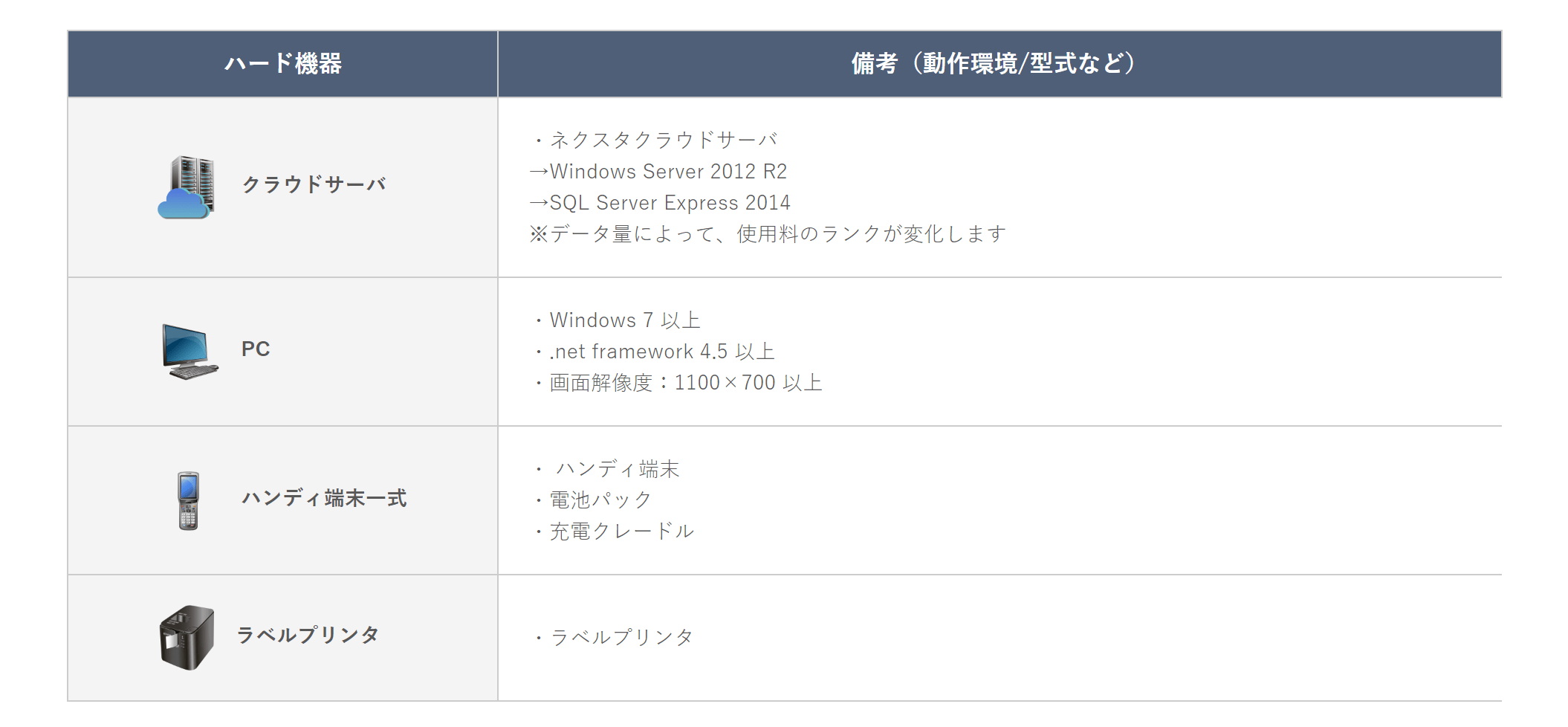 機能数とライセンス数によって変化します。ライセンスは当社システムをインストールするPCやハンディなどの端末の数になります。