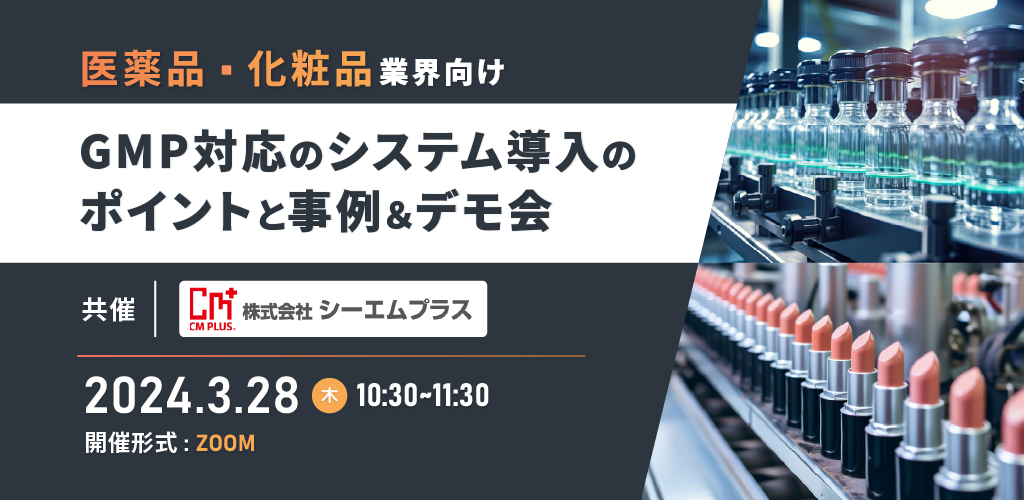 【製薬・化粧品業界向け】GMP対応のシステム導入のポイントと事例&デモ会|シーエムプラス×ネクスタ共催セミナー